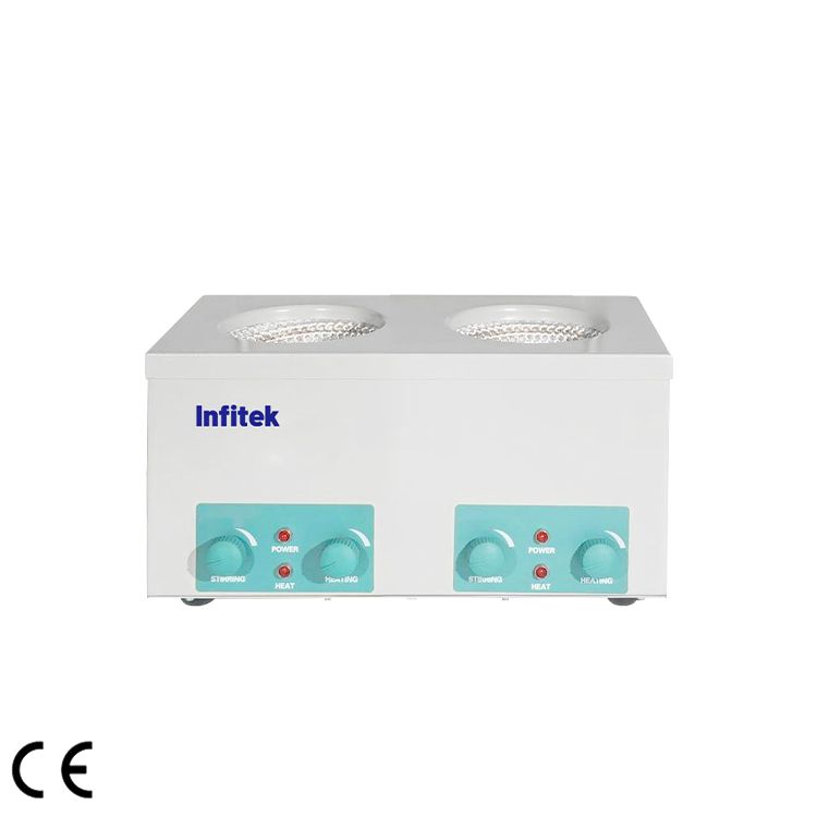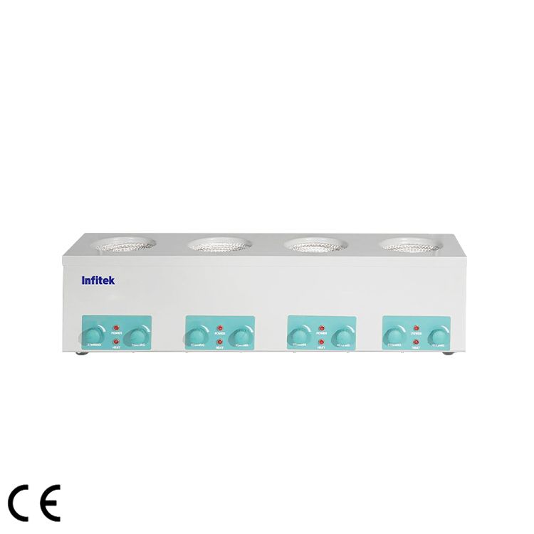 1. Mode de chauffage à régulation électronique de la température. Le chauffage et l’agitation peuvent se dérouler simultanément ; réglage de la vitesse en continu.